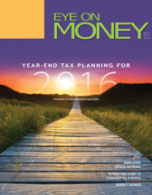 14-Nov-2016 As year-end approaches, be sure to give us a call to review your tax situation for 2016. This edition of Eye on Money Magazine has a great article on tax-minimizing strategies that may help you reduce your tax liabilities.