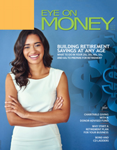 30-Sep-2016 The September corporate extension deadline has come and gone. While we are working on extended individual tax returns, we hope you enjoy this next edition of Eye on Money Magazine. The featured article Building Retirement Savings at Any Age gives great advice for what to do in your 20s, 30s, 40s, 50s, and 60s. Enjoy the fall weather!